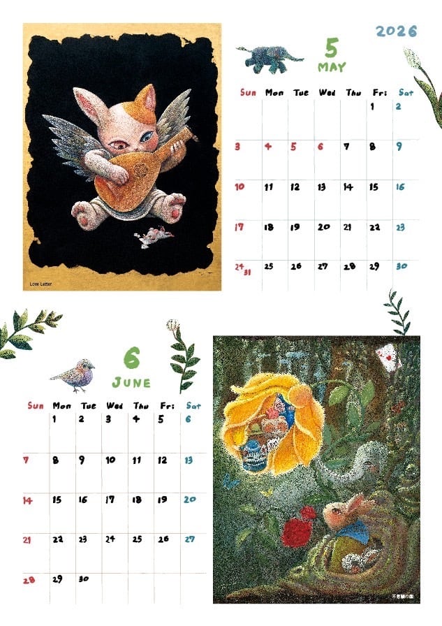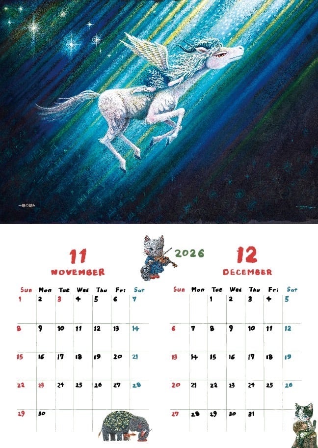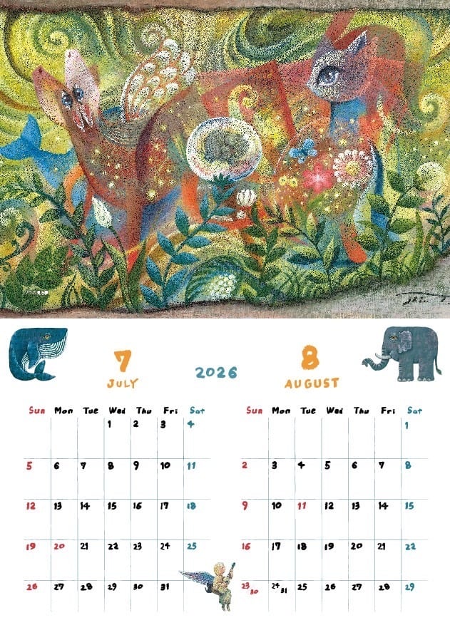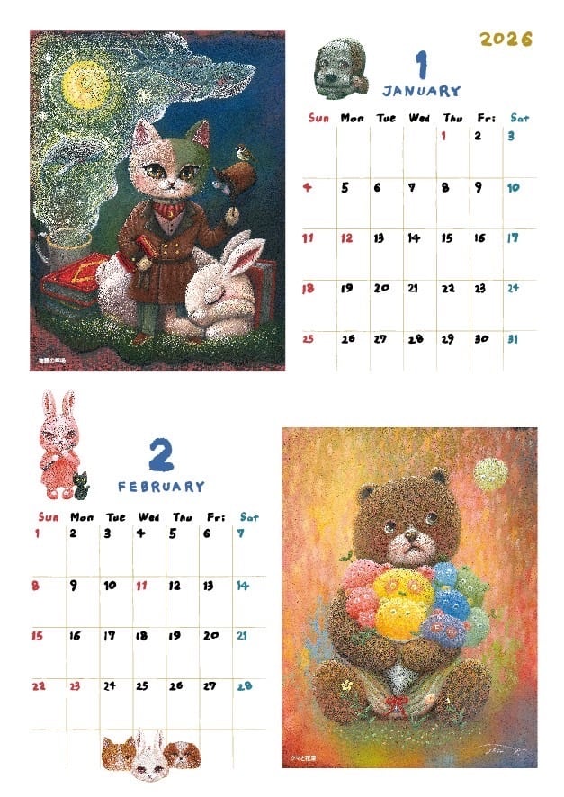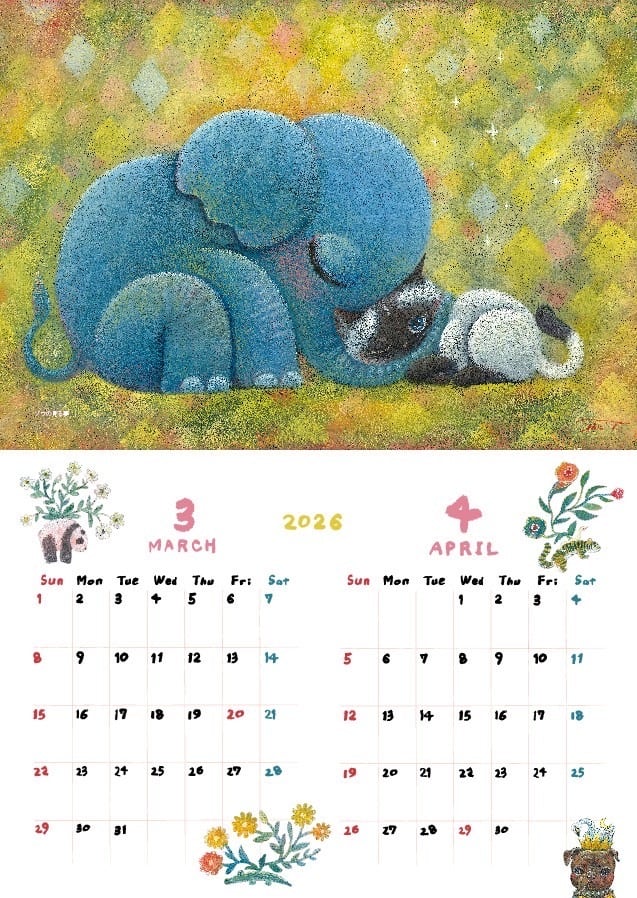 開いて一番目の絵は二つのハート模様が特徴の大きな猫さん。