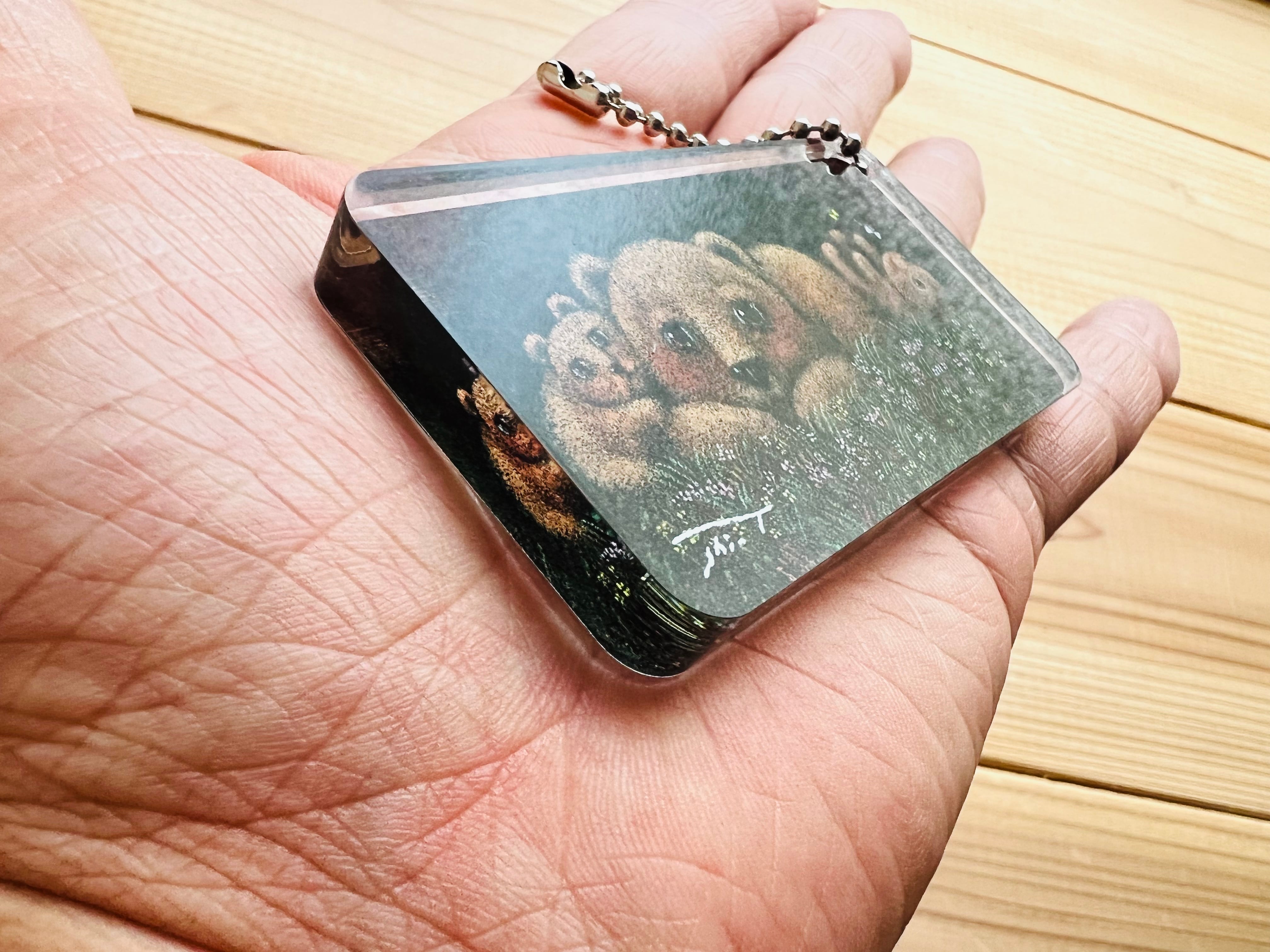 手のひらサイズのキーホルダーです。