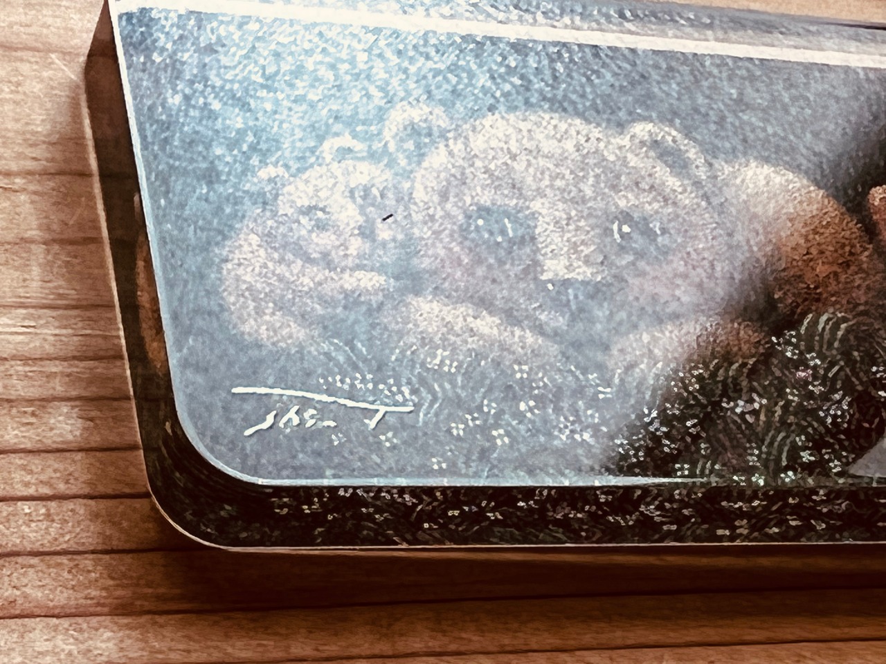 厚みのあるアクリルに「ごろごろごろん」という作品を印刷しました。